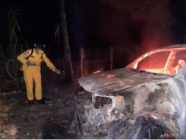Inmediatamente, llamó a los Bomberos Voluntarios, quienes lamentablemente ya nada pudieron hacer por la camioneta que quedó totalmente consumida por el fuego. Sin embargo lograron controlar el incendio, para que este no se propague por la vivienda, ubicada en pleno centro de José Leandro Oviedo.