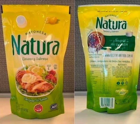 Se estableció la prohibición de “la elaboración, fraccionamiento y comercialización en todo el territorio nacional (Argentina) del producto falsificado en cuyo rótulo luce: Mayonesa reducida en valor lipídico libre de gluten sin tacc, marca: NATURA, nombre de fantasía: mayonesa con jugo de limón”, menciona el comunicado.