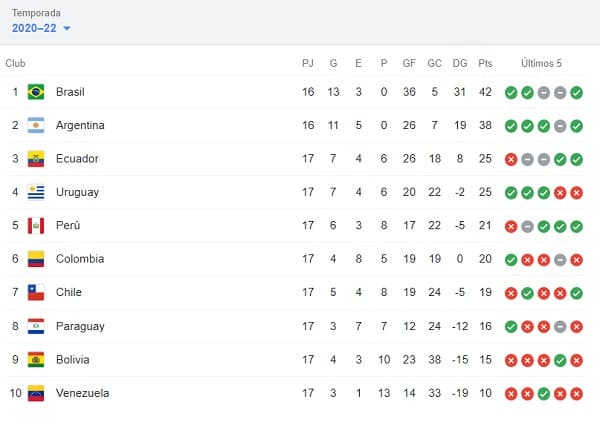Todos los juegos se disputarán el mismo horario y están en carrera, además de Perú, Colombia y Chile.