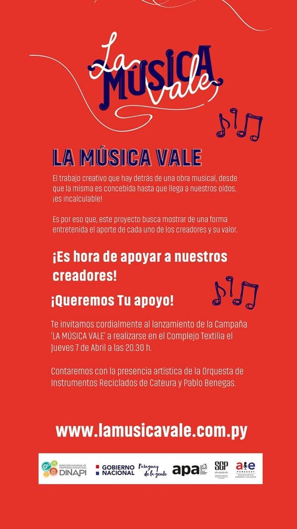 Así también, invitaron a visitar la página web www.lamusicavale.com.py para conocer más sobre la iniciativa y los derechos del sector artístico.