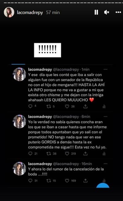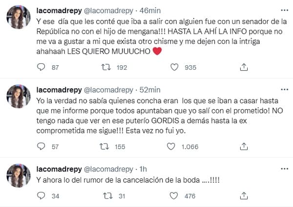 “Y ahora lo del rumor de la cancelación de la boda ….!!!!”, comenzó lanzando La Comadre en redes sociales.