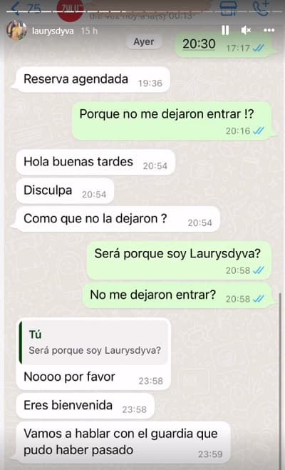 Laurys rebota de restaurante y pide “no a la discriminación”