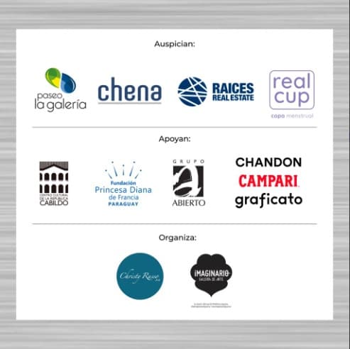 Apoyan el evento: Fundación Princesa Diana, Grupo Abierto de las Artes, Cabildo de Asunción, Graficato, Campari, Chandon.