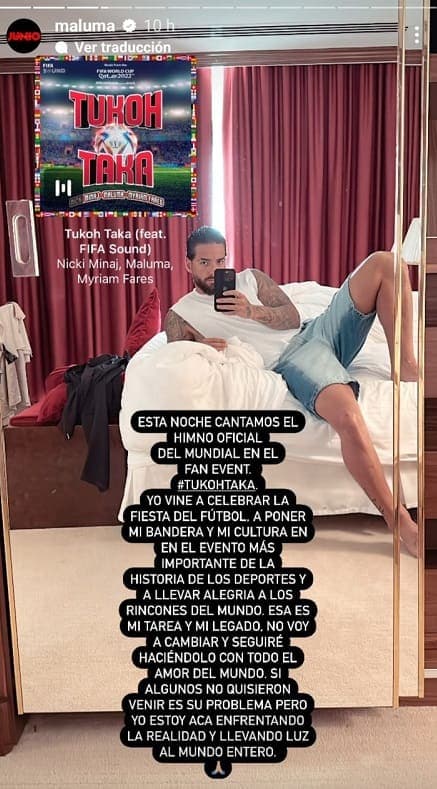 Más tarde, el colombiano sentó su postura en su cuenta en Instagram, señalando lo siguiente: “Yo vine a celebrar la fiesta del fútbol, a poner mi bandera y mi cultura en el evento más importante de la historia de los deportes, y a llevar alegría a los rincones del mundo. Esa es mi tarea y mi legado, no voy a cambiar y seguiré haciéndolo con todo el amor del mundo”.