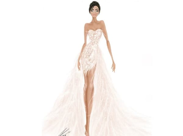 El portal del citado medio menciona que el atuendo de la ex Miss Universo Paraguay estuvo a cargo de la firma Galia Lahav. “Un diseño de aires románticos, con detalles de encaje y transparencias y una larga y voluminosa caída”, refiere la revista, acerca del diseño del vestido.