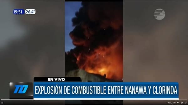 Hasta las 20:00 (19:00 de Paraguay) el fuego se elevaba más de 20 metros y había explosiones esporádicas muy fuertes, de acuerdo al reporte.