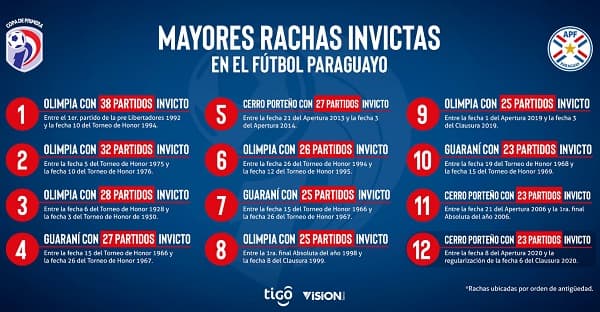 Ese logro no es el único, considerando que el equipo franjeado igualó la racha más larga sin perder, de 38 partidos, según el medio oficial Olimpia Media. El récord absoluto lo tenía Olimpia, entre 1992 y 1994. Si las chicas decanas no son derrotadas, superarán al equipo masculino del club, firmando una verdadera hazaña.