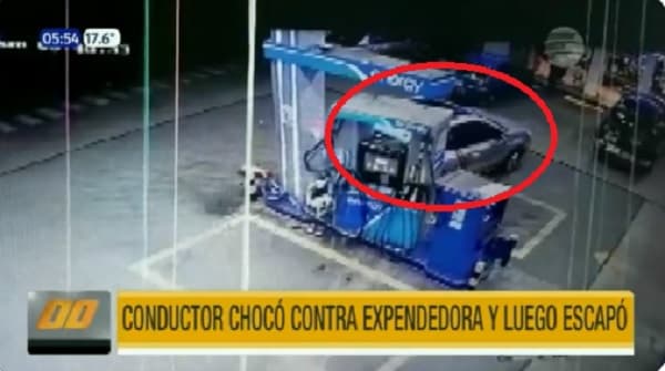 Ante los reclamos del conductor afectado, en lugar de afrontar la situación, decidió huir del lugar. Sin embargo, en su intento de escape, retrocedió bruscamente y terminó impactando una de las expendedoras de combustible.