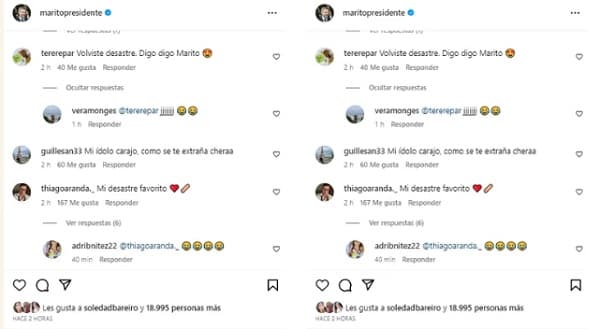 Pero no todo fue nostalgia, ya que algunos seguidores tomaron la oportunidad para recordar, con humor, algunas de las frases icónicas de su mandato. “Volviste desastre, digo Marito”, apuntó un usuario, mientras que otros, con una mezcla de cariño y sátira, lo llamaron “mi desastre favorito”.
