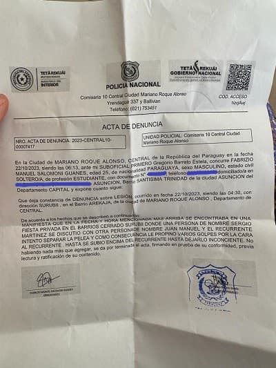La víctima recobró la conciencia sangrando, rodeado de paramédicos y guardias que intentaban controlar a Martínez Torres, quien continuaba descontrolado. En su frenesí, dañó el parabrisas de un vehículo ajeno mientras era detenido, lo que provocó una denuncia adicional por parte del propietario del vehículo.
