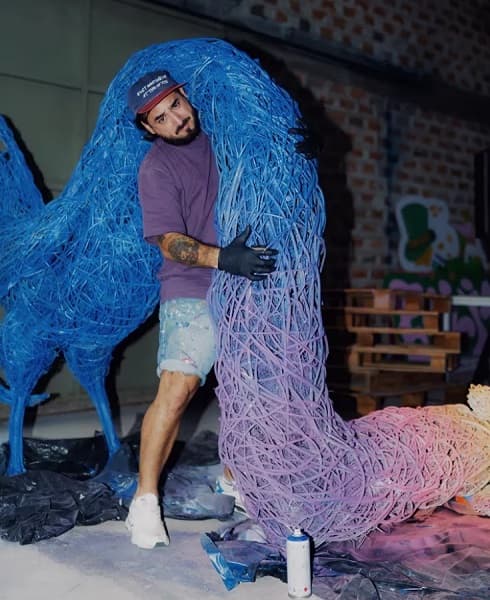 Lucas We! no se conforma con los límites convencionales del arte. Su propuesta es ruidosa, desafiante y llena de color. Se apodera del entorno físico para transformarlo en un espectáculo visual, un Art Show que rompe las barreras de lo tradicionalmente expositivo.