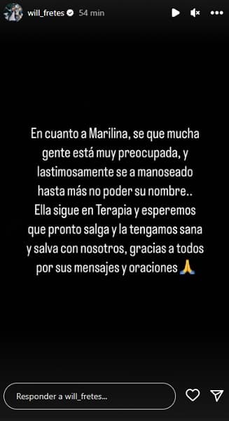 “Marilina sigue en terapia y esperamos que pronto salga y la tengamos sana y salva con nosotros. Gracias a todos por sus mensajes y oraciones”, concluyó Fretes.