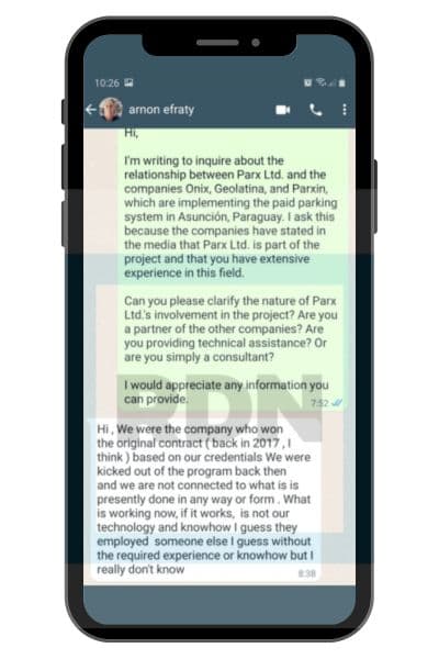 Según pudo confirmar la redacción de RDN, la empresa israelí Parx Ltd., que según documentos oficiales poseía la mayoría accionaria de Onix Parque S.A. de Argentina, ya no forma parte del consorcio Parxin que implementó el estacionamiento tarifado en Asunción. Esto contradice lo informado inicialmente por el consorcio a la comuna capitalina.