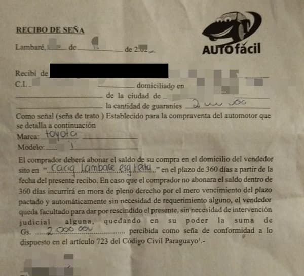 El modus operandi de “Auto Fácil” implica la oferta de vehículos usados importados vía Chile a través de redes sociales, con cuotas accesibles, actualmente desde 750 mil guaraníes. Los relatos de las víctimas indican que contactan con los vendedores por redes sociales, acuden a las oficinas para hacer una entrega inicial y firmar un precontrato, dejando datos personales. Aunque se les asegura que su solicitud pasará por un proceso de aprobación y que, en caso de no ser aprobada, se les devolverá el dinero, una vez realizado el pago, la empresa comienza a dar excusas para no cumplir con el acuerdo inicial, ignorando los reclamos de los clientes.
