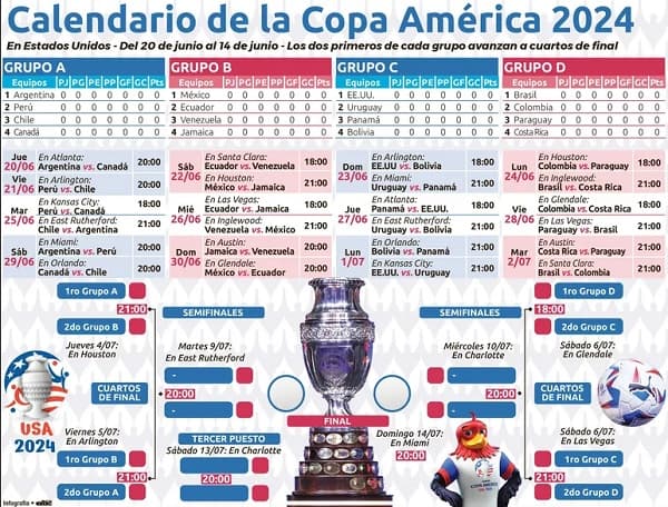 Por su parte, Argentina, vigente campeón de la Copa América, encabeza el Grupo A junto a Perú, Chile y Canadá. La Albiceleste buscará defender su título y ratificar su supremacía en el continente, mientras que sus rivales intentarán dar la sorpresa y arrebatarle el trono.