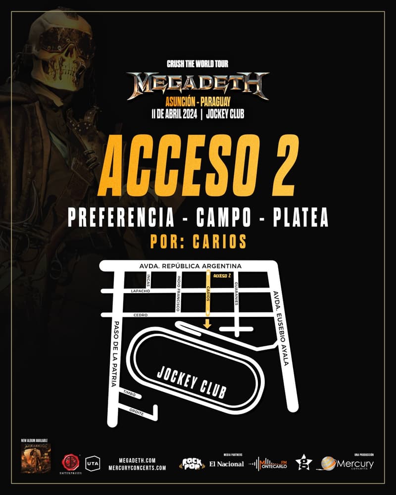 La legendaria banda liderada por el guitarrista y vocalista Dave Mustaine afianza su regreso triunfal a los escenarios con esta esperada presentación en Paraguay, que coincide con el lanzamiento de su decimosexto álbum de estudio, “The Sick, The Dying… And The Dead”.