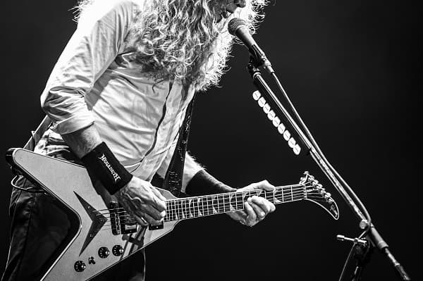 Con canciones en seguidilla, casi sin hablar, pero eligiendo los momentos precisos para acercarse al público en diferentes puntos del escenario, Mustaine confirmó que se debe a todos por igual. Su larga cabellera pelirroja, casi dorada, se agitaba al compás de sus solos espiralados y sus melodías incisivas.