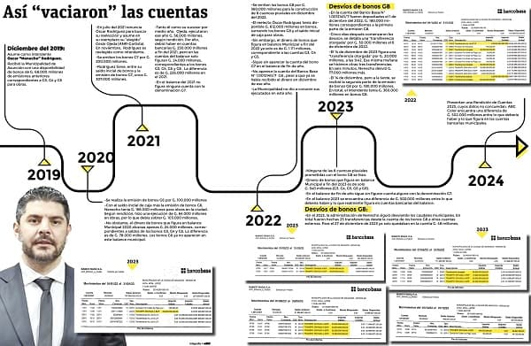 Los extractos bancarios correspondientes a los bonos municipales G8, emitidos en 2022, muestran un patrón alarmante de desvío de fondos a diferentes cuentas durante los años 2022 y 2023. A pesar de la magnitud de las transferencias realizadas, Nenecho no ha respondido a los cuestionamientos sobre el paradero del dinero o su utilización, ya que las obras prometidas no fueron ejecutadas. El informe entregado a la Contraloría General de la República la semana pasada tampoco arroja luz sobre este asunto.
