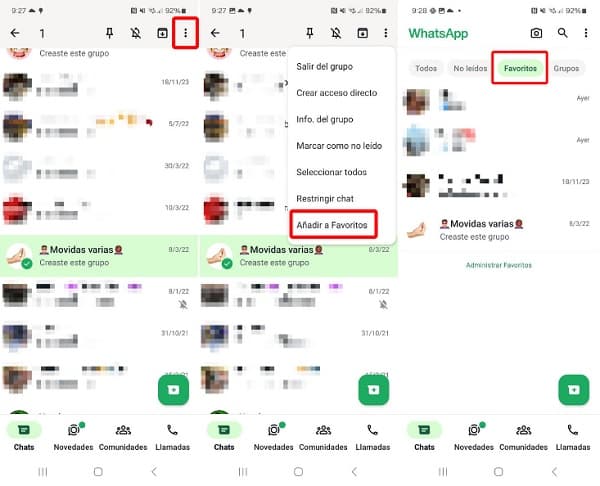 Aunque WhatsApp ya ofrecía la opción de fijar chats en la parte superior de la lista, la función de favoritos va un paso más allá. Proporciona una pestaña dedicada que separa completamente estas conversaciones prioritarias del resto, mejorando significativamente la organización.