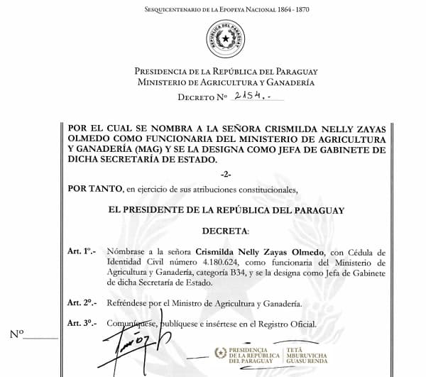 Mientras tanto, el ministro parece más preocupado por afianzar su poder. LPO ha confirmado el nombramiento a dedo de Crismilda Nelly Zayas como nueva jefa de gabinete del MAG, sin título universitario y con un jugoso salario. Este es solo el último ejemplo de una serie de designaciones cuestionables.