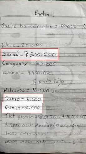 Pero la Senad no está sola en este baile de sobornos. La Policía Nacional también aparece con las manos en la masa. Desde pagos a “Inteligencia” hasta coimas a dependencias locales, nadie parece haberse salvado.