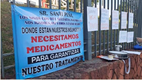 Pacientes y familiares de niños con diabetes tipo 1 se manifestaron hoy frente al Ministerio de Salud Pública (MSPBS) para exigir la provisión de insulina en los hospitales públicos del país. Los padres de los niños insulinodependientes señalaron que el desabastecimiento del medicamento lleva más de un mes, poniendo en riesgo la vida de sus hijos.