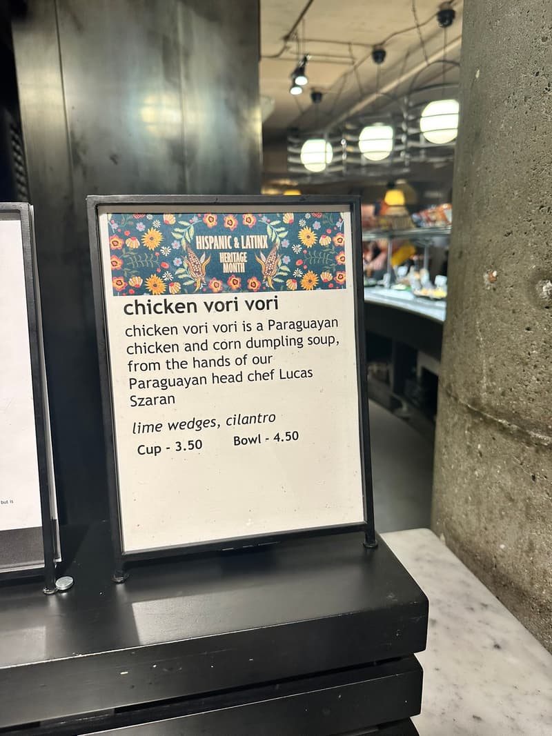 Szarán, quien trabaja en la sede de Starbucks, publicó una imagen en la que se destaca el vorivori en un cartel de la cafetería bajo el lema “Mes de la herencia hispánica y latina”. El plato, denominado “chicken vorivori”, se describe como una sopa de pollo con bolitas de maíz, receta típica del país.