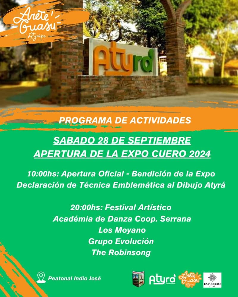 La ciudad de Atyrá se prepara para dar inicio al Areté Guasu Atyrápe 2024, una de las festividades más importantes de la comunidad. Este evento, conocido por su combinación de actividades culturales, artísticas y religiosas, comenzará el sábado 28 de septiembre con la inauguración de la 20ª edición de la Expo Cuero Atyrá, a partir de las 8:00 horas.