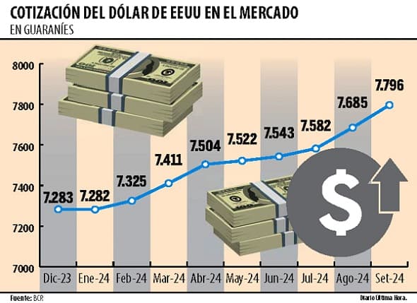 La economía paraguaya enfrenta un desafío significativo con la creciente depreciación del guaraní frente al dólar estadounidense. Según datos del Banco Central del Paraguay (BCP), la moneda local ha acumulado una pérdida de valor superior al 7% desde enero hasta septiembre de 2024, situando la cotización referencial cerca de los G. 7.800 por dólar al cierre del noveno mes del año.