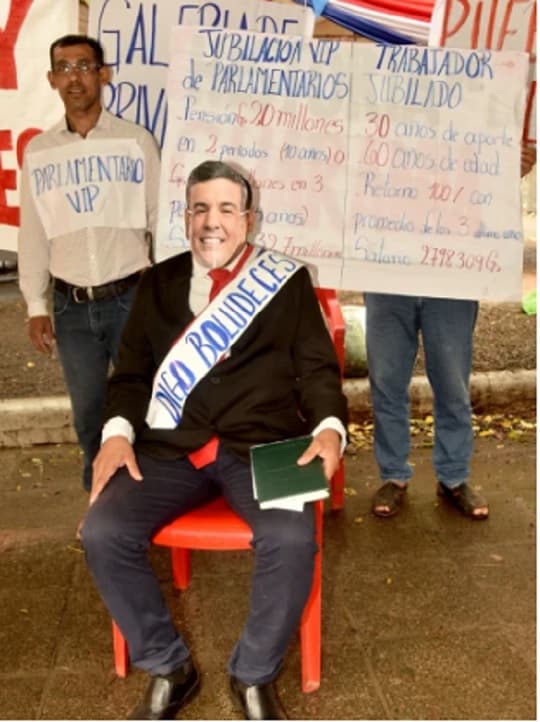 Durante la protesta, se incluyó al “presidente Digo Boludeces”, un personaje que parodia al presidente Santiago Peña. Según Dora Flecha, integrante del PPP, la intención de la manifestación es repudiar lo que califican como persecución hacia las organizaciones civiles en el país.
