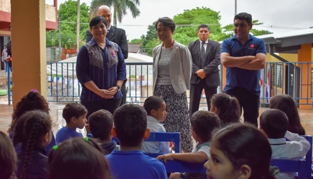 La embajadora de Japón en Paraguay, Yoshie Nakatani, también estuvo presente y enfatizó la importancia de la educación como una inversión esencial para el futuro. Nakatani subrayó el compromiso de su país en apoyar el desarrollo educativo de Paraguay, instando a la comunidad escolar a utilizar las nuevas instalaciones de manera responsable. “La educación es la inversión más grande del país porque los niños son el futuro”, dijo la embajadora, resaltando la responsabilidad compartida en brindar espacios seguros para el aprendizaje.