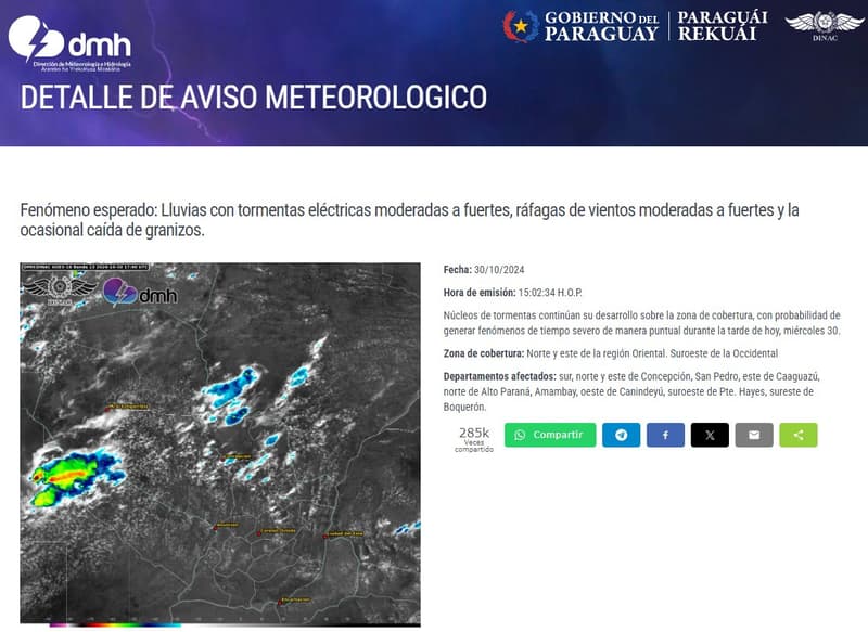 La alerta abarca los departamentos de Concepción, San Pedro, Caaguazú, Alto Paraná, Amambay, Canindeyú, Presidente Hayes y Boquerón. De acuerdo con el pronóstico, las tormentas comenzarán a desarrollarse durante la tarde, con núcleos de tormenta que podrían intensificarse rápidamente. Esta situación eleva el riesgo de fenómenos climáticos peligrosos, especialmente en áreas vulnerables como los asentamientos rurales y zonas urbanas sin sistemas de drenaje adecuados.