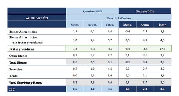 En contraste, se observaron reducciones significativas en productos lácteos, azúcar, edulcorantes y bebidas no alcohólicas. Las hortalizas y legumbres lideraron las disminuciones en el sector alimentario, que experimentó una baja general del 6,4% en octubre, acumulando una variación negativa del 3,5% en el año.