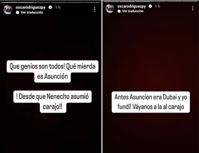 En una publicación de Instagram, Rodríguez comentó con ironía que “Asunción era Dubai antes de que él asumiera”, afirmando que desde su llegada la ciudad “se fundió”. Esta frase, acompañada de errores ortográficos, ha sido interpretada por la ciudadanía como una reacción a las constantes críticas que recibe su gestión, particularmente en temas de obras públicas y promesas incumplidas.