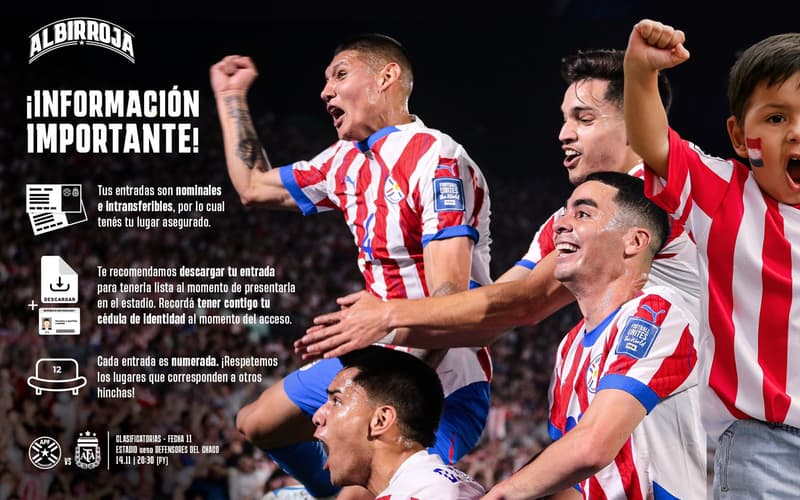 Como primer punto, se recuerda que las entradas para el encuentro son nominales e intransferibles. Solo se permitirán las entradas adquiridas a través de Red UTS, ya sea en formato digital descargado en el celular o impreso. Para acceder a los sectores asignados a la hinchada local, será indispensable presentar la cédula de identidad paraguaya, ya que no se permitirá el ingreso con documentos de identidad argentinos.