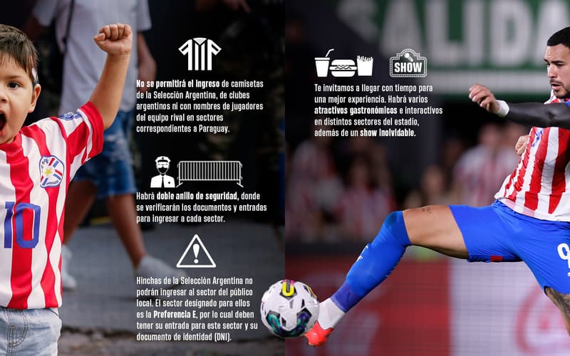 En cuanto a la indumentaria, la APF ha establecido una estricta restricción para el sector local. No se permitirá el acceso a personas con prendas alusivas a la selección argentina, clubes o jugadores argentinos, incluso si cuentan con entradas válidas para ese sector. Esta medida busca evitar conflictos y garantizar que cada afición se mantenga en los sectores designados.