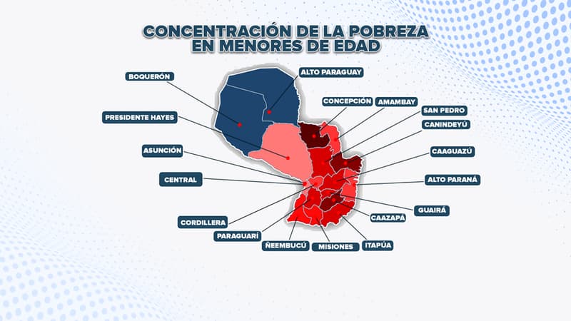 La capital del país muestra los índices más bajos, con una incidencia del 17,5%. Sin embargo, en departamentos como Concepción, el panorama es más crítico, alcanzando un 48% de pobreza infantojuvenil. Regiones como Paraguarí, San Pedro, Itapúa y Caaguazú presentan tasas de entre 40% y 43%, evidenciando una brecha significativa entre áreas urbanas y rurales.