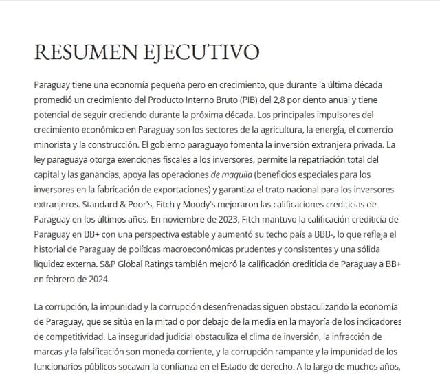 Pese a los esfuerzos por mejorar el clima de inversión, el informe pone de relieve los desafíos estructurales que enfrenta Paraguay. La lucha contra la corrupción y la mejora de la seguridad jurídica son aspectos cruciales para garantizar un entorno favorable para el crecimiento económico sostenible y la atracción de inversiones a largo plazo.