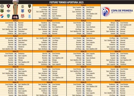 Faltan apenas 25 días para que el fútbol de Primera División vuelva a las canchas con el inicio del torneo Apertura 2025, programado para el viernes 24 de enero. El campeonato contará con un total de 22 fechas, distribuidas en dos ruedas de once jornadas cada una, bajo el sistema de todos contra todos. Tres fechas han sido adelantadas en el calendario, marcando un inicio dinámico para los equipos participantes.