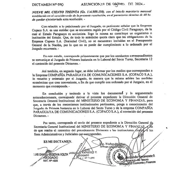 Esta nueva interpretación ignora que COPACO no recibe partidas presupuestarias estatales desde el año 2000 y que la Ley N° 7278 establece explícitamente que la empresa se rige por el Código Civil como sociedad anónima, con un patrimonio independiente al del Estado.