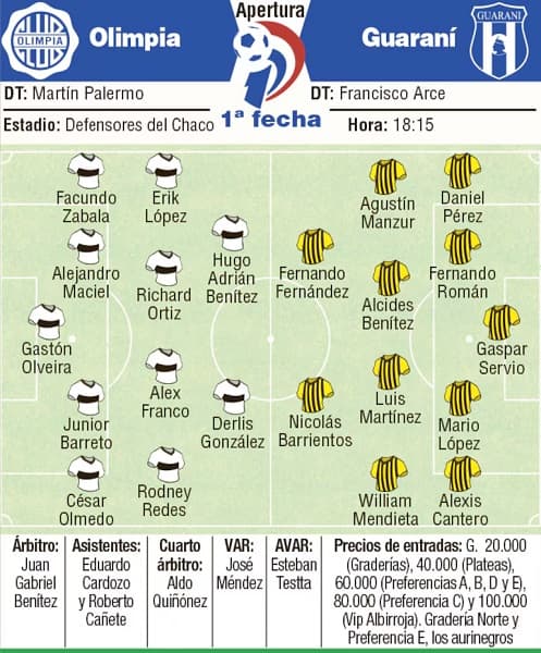 En el Defensores del Chaco, a las 18:15, Olimpia y Guaraní protagonizarán una nueva edición del clásico más antiguo del fútbol paraguayo. El duelo entre el campeón y subcampeón del último Clausura se presenta como una prueba temprana de las aspiraciones de ambos equipos para la temporada 2025.