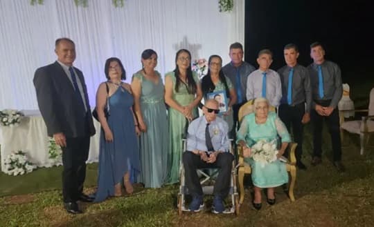 En la localidad de Jhugua Tadeo, Paso Horqueta, un acontecimiento especial reunió a familiares y amigos para celebrar los 70 años de matrimonio de Don Eleuterio Cristaldo (90) y Doña Francisca Ruiz (88). La pareja, símbolo de amor y perseverancia, fue homenajeada por su numerosa familia, que destacó su compromiso y fortaleza a lo largo de los años.