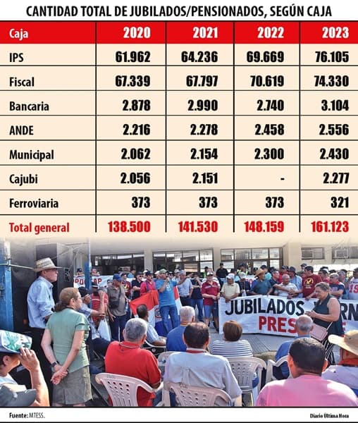 El panorama previsional paraguayo muestra marcadas diferencias entre las distintas cajas jubilatorias, según revela el reciente Boletín Estadístico de Seguridad Social 2024, elaborado por el Ministerio de Trabajo, Empleo y Seguridad Social (MTESS). El informe destaca que el país cuenta con 161.123 jubilados y pensionados distribuidos en diferentes entidades previsionales.