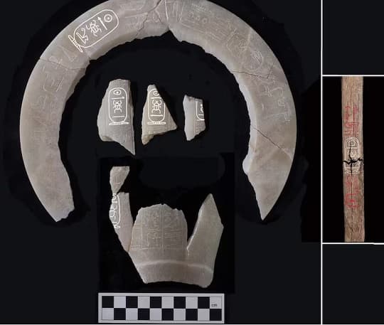 En el interior de la sepultura, los arqueólogos han encontrado tesoros que confirman su pertenencia a Tutmosis II: fragmentos con policromía original y vasijas de alabastro con inscripciones que mencionan al faraón como «rey fallecido». Estos elementos constituyen los primeros vestigios conocidos del ajuar funerario del monarca, incluyendo referencias a su esposa principal, la célebre reina Hatshepsut, quien probablemente supervisó los ritos funerarios.