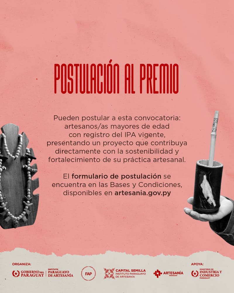 El programa se enmarca en la misión del IPA, establecida por la Ley N° 2448/2004, de promover la salvaguarda y el desarrollo sostenible de la artesanía paraguaya, fortaleciendo su potencial económico, social y cultural en beneficio de los artesanos y sus comunidades. Los interesados pueden acceder a las bases y condiciones completas en el sitio web artesania.gov.py.