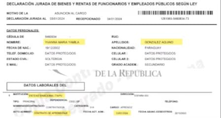 Nombramiento en Itaipú: hija de Yamy Nal sin registro oficial en la entidad