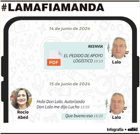 Además de Acosta, la diputada cartista Rocío Abed también figura en los intercambios. Se detectaron mensajes en los que Gomes gestionaba reservas de hotel para legisladores y pedidos de apoyo logístico dirigidos a la Itaipú Binacional, donde su esposo, Justo “Lucho” Zacarías, es el actual director paraguayo.