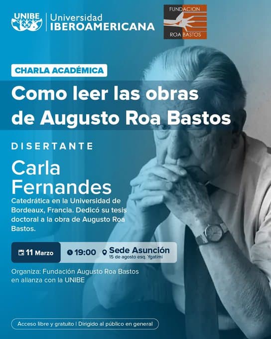 El ciclo de conferencias comenzará este lunes 10 de marzo en la Facultad de Filosofía de la Universidad Nacional de Asunción (UNA), con la charla titulada “Pautas para la investigación sobre el legado literario de Augusto Roa Bastos”, programada para las 18:00. Fernandes, con más de 30 años de estudios sobre la obra del célebre escritor paraguayo, compartirá herramientas para el análisis de sus textos.