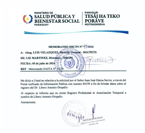 La controversia se originó tras una publicación periodística en el medio digital Resumen de Noticias (RDN), donde se reveló que Oropallo operaba sin la debida licencia profesional en territorio paraguayo. Esta información, lejos de constituir un ataque personal, fue respaldada por documentos oficiales obtenidos mediante solicitudes al portal de acceso a información pública.