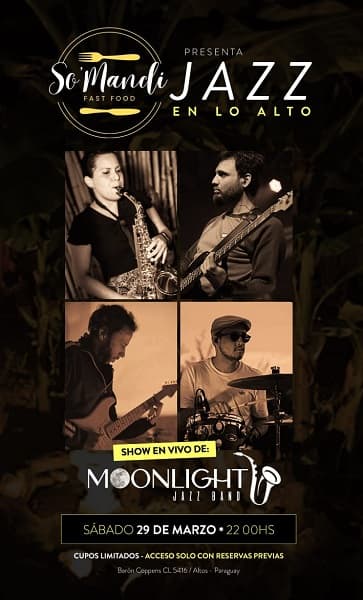 El próximo sábado 29 de marzo, la ciudad de Altos será escenario de una velada musical única con la presentación de Moonlight Jazz Band, agrupación que debutará su repertorio de standards clásicos del jazz internacional. El concierto tendrá lugar a las 21:00 horas en So’Mandi, un espacio que apuesta por la fusión entre música de calidad y experiencias gastronómicas.
